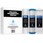 Original equipment replacement filters for Clearsource Ultra Three Canister - With VirusGuard™. Includes one Clearsource rust-inhibiting filter cartridge, one .5 micron carbon block filter cartridge with high-density activated coconut shell carbon, and one VirusGuard™ filter.