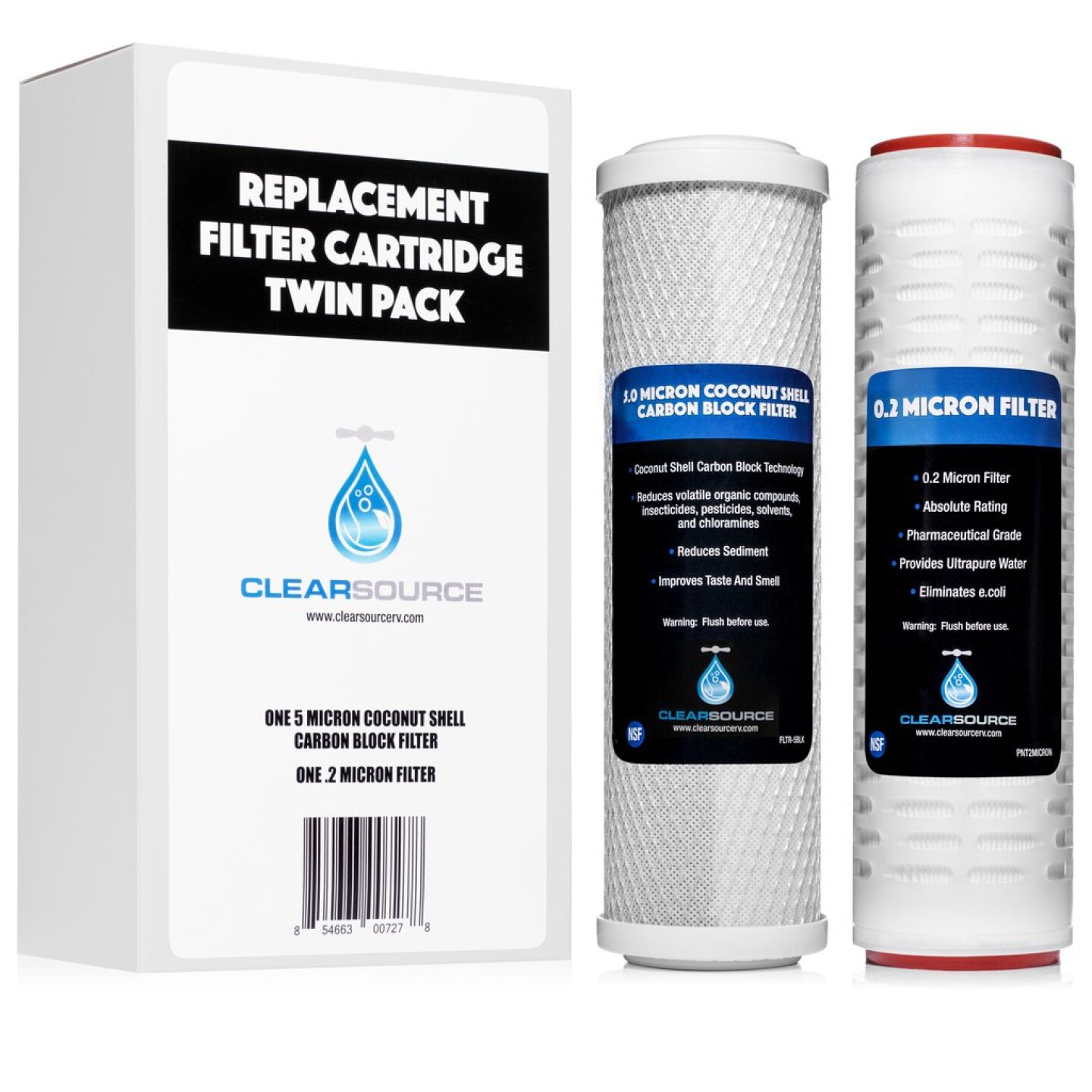 Replacement filter package with one first stage 5 micron coconut carbon block filter and one second stage 0.2 micron absolute filter.